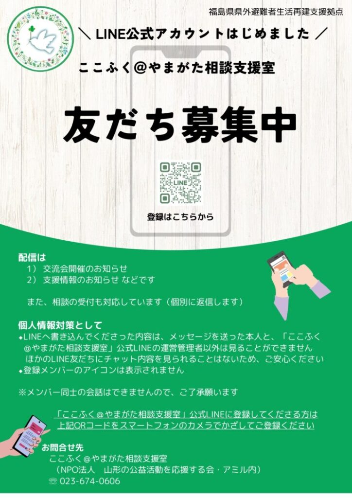 アミルでは「ここふく@やまがた相談支援室」として、避難者の皆様の日頃の悩みや不安をお伺いし、皆さまが安心して暮らしていくことができるよう一緒に考えます。