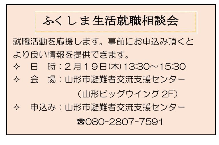 詳しくはこちら⇒ふくしま生活・就職応援センター