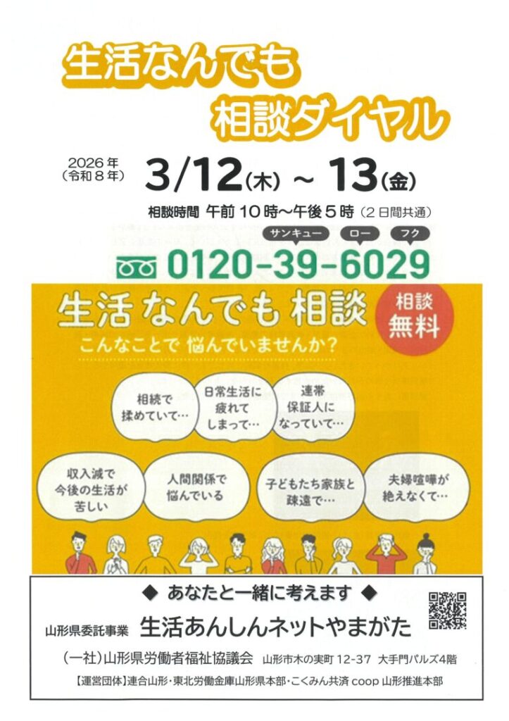(一社)山形県労働者福祉協議会 TEL:0120-39-6029