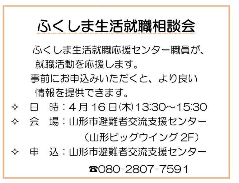詳しくはこちら⇒ふくしま生活・就職応援センター