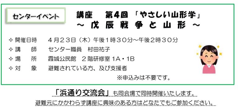 山形市避難者交流支援センター TEL:080-2807-7591