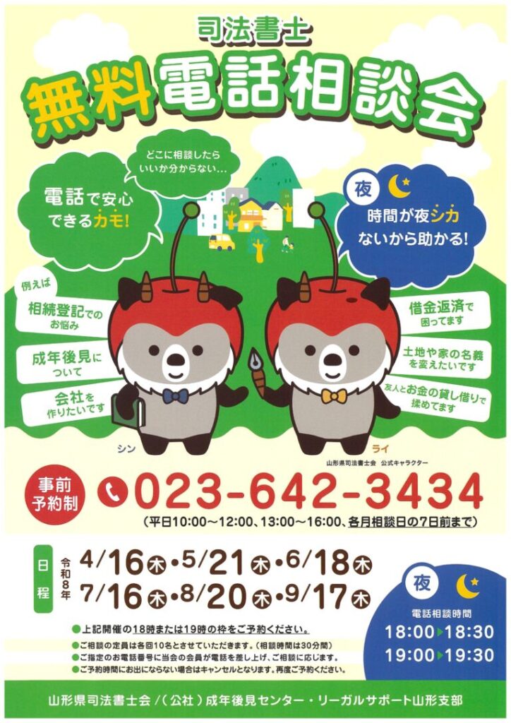 山形県司法書士会 TEL:023-642-3434