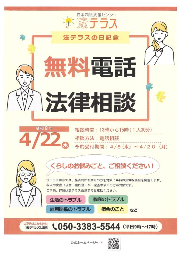 法テラス山形 TEL:050-3383-5544(平日9時~17時)