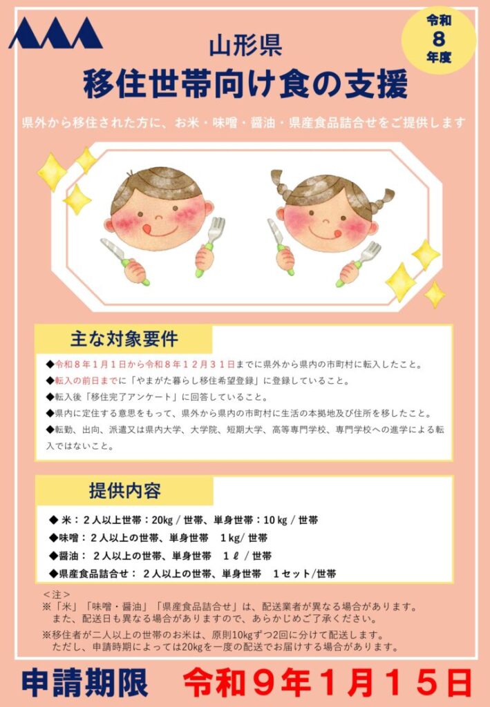 「山形県移住世帯向け 令和8年度食の支援事業のご案内」チラシのダウンロードはこちらから