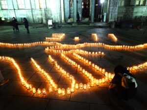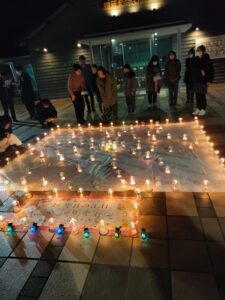 有志の企画により、鶴岡まちなかキネマ前にて約100本のキャンドルが灯され、防災講話や語る会が開催されました。
