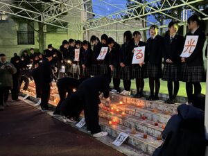 山形市の文翔館で開催された追悼セレモニーでは、山形交響楽団による弦楽三重奏が捧げられました。前広場では、被災された方と手を取り合いながら復興を願うキャンドルに、若い世代が祈りを込めて点灯しました。