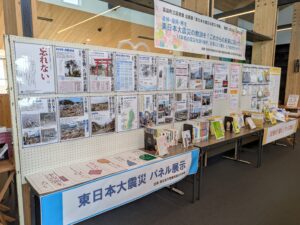 高畠町立図書館にて、東日本大震災のパネル写真や防災用品などの展示が行われました。