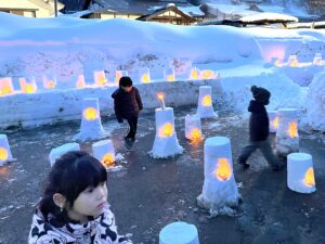 〈イベント〉15:00~ 玉こんにゃく等の販売、甘酒の振る舞い 16:00~ 雪灯篭点灯 18:00~ 花火打ち上げ(10分程度)