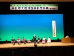米沢市市民文化会館にて「東日本大震災を語り継ぎ、15年前の教訓を次の世代へ」をテーマに献花と黙とうが捧げられ、講演やコンサートも開催されました。