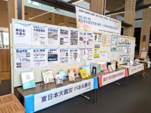 高畠町立図書館にて、東日本大震災のパネル写真と関連書籍などの展示が行われました。