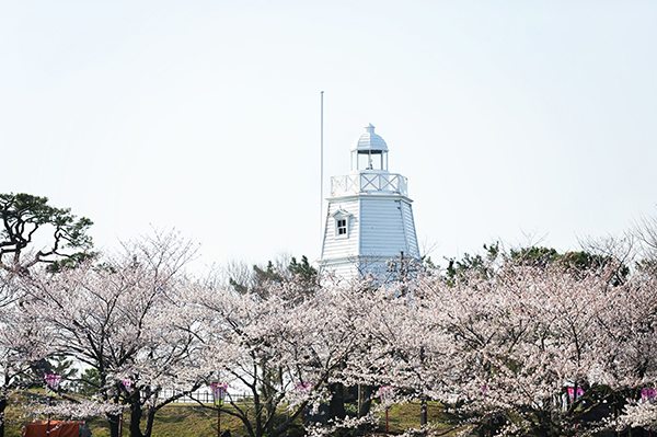 日本海に沈む夕陽が旅情をかきたてる日和山公園は、桜の名所でもあり、毎年4月中旬には酒田日和山桜まつりが開催され、ソメイヨシノなど約400本の桜が咲き誇り、夜はボンボリでのライトアップも行われます。